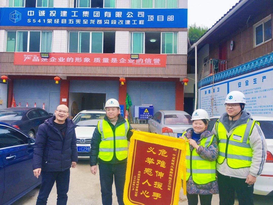 荥经S541项目员工紧急护送罐车司机就医获致谢锦旗