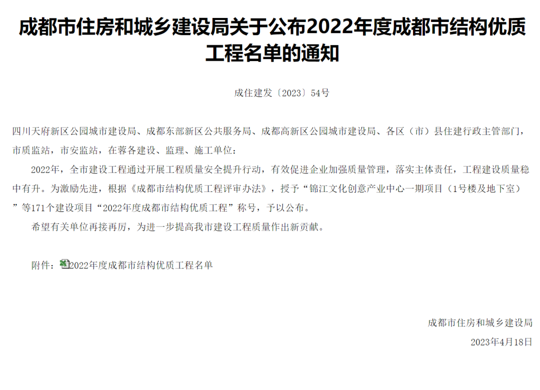 中诚投建工集团三个项目获2022年度成都“结构优质工程”奖