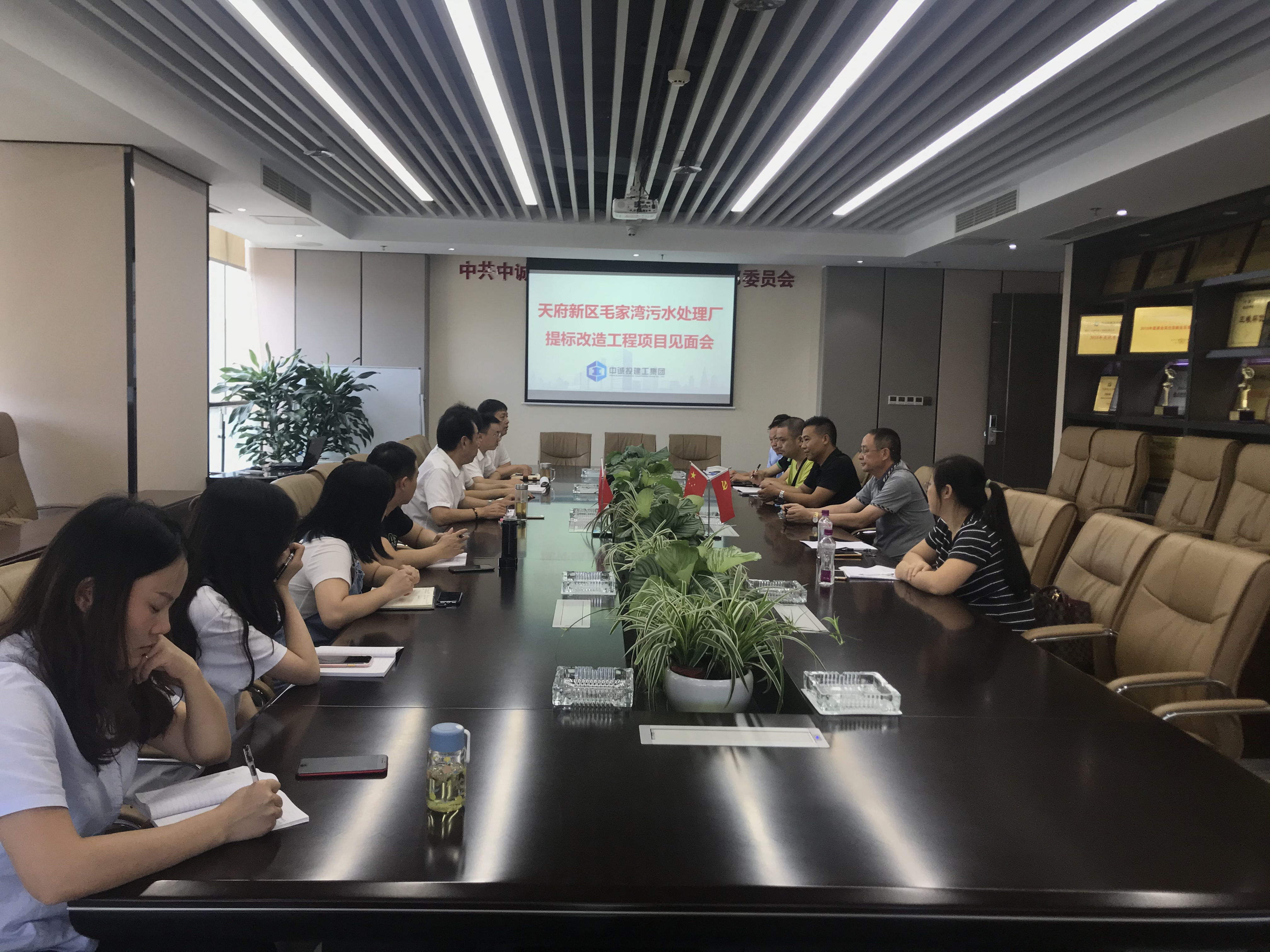 7月17日下午,集团公司召开天府新区毛家湾污水处理厂提标改造工程项目见面会。集团公司各业务部门负责人参加了会议。该项目位于天府新区正