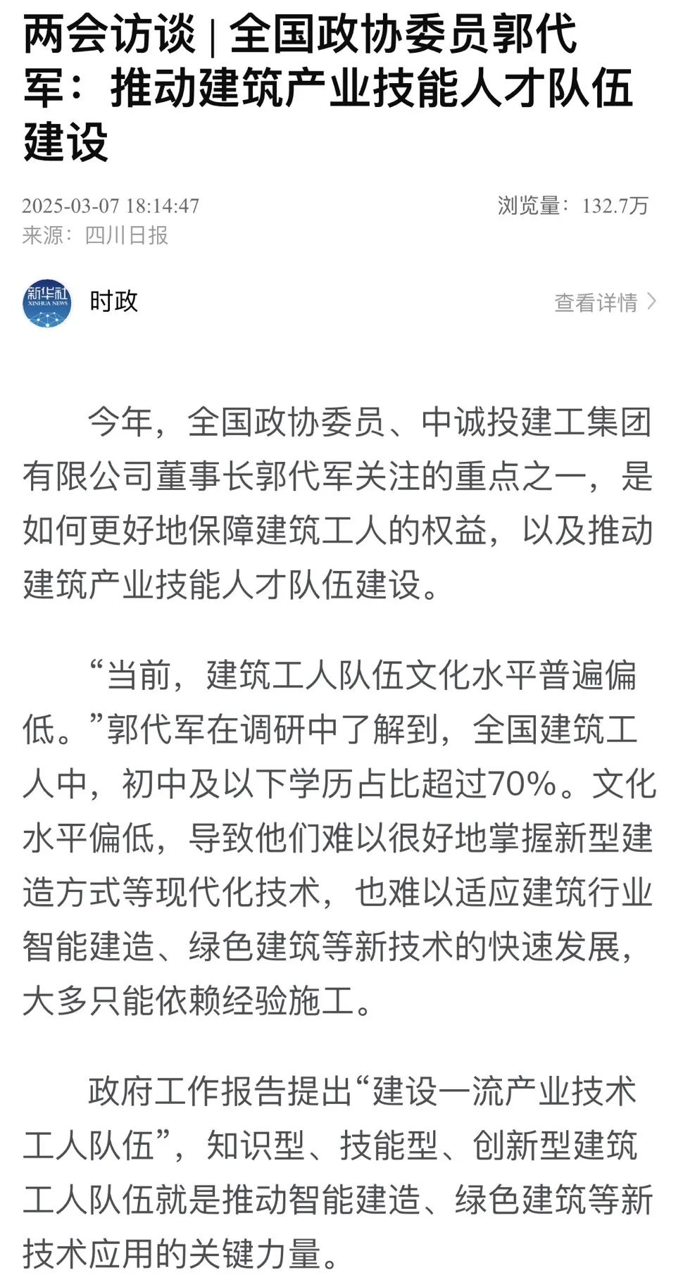 全国政协委员、中诚投建工集团董事长郭代军参加全国政协