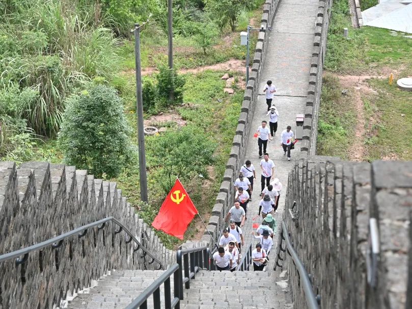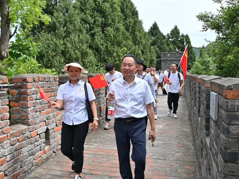 登顶后,党委举行了齐唱党歌、重温入党誓词系列活动。在党委书记张阜文的带领下,全体同志庄严肃立面向党旗,高举右手重温入党誓词,重忆作为一名共产党员的革命初心,在一声声的庄严誓言中更加坚定自己的理想信念,深切领悟党员的历史使命。