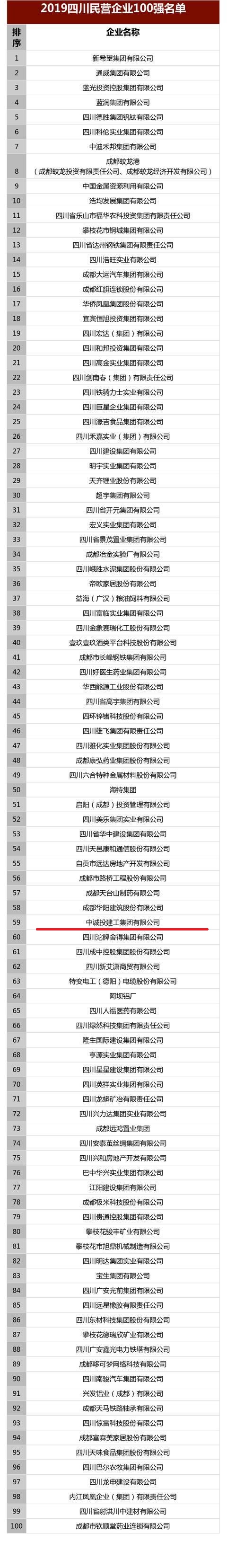 9月4日,四川省工商联第十一届四次常委会议暨2019四川省民营企业100强发布会在成都召开。全国工商联副主席、省政协副主席、省工商联主席陈放,省委统战部副部长、省工商联党组书记、常务副主席陈泉等出席会议。集团公司荣获“2019四川民营企业100 强”,名列榜单第59位。