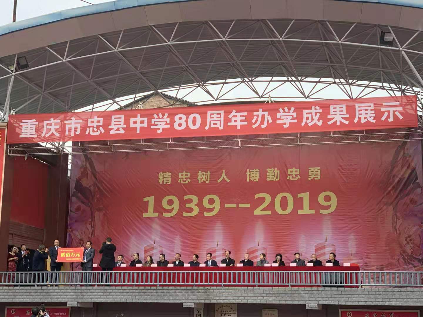 11月22日,在重庆市忠县中学建校80周年办学成果展示活动中,集团公司向该校捐赠资金200万元,用于帮助学校建设与发展。