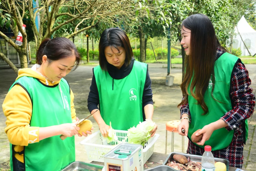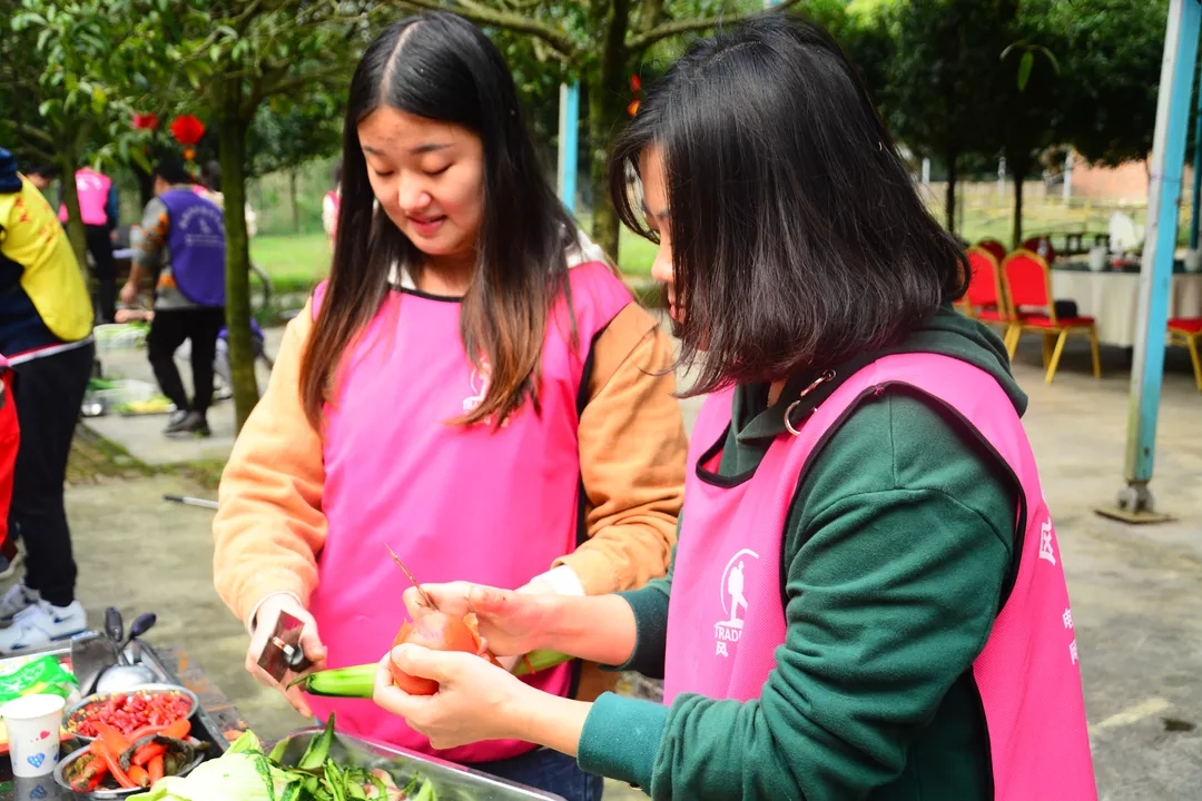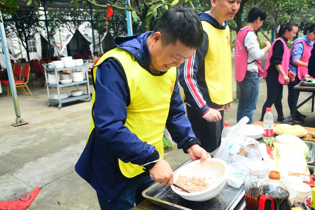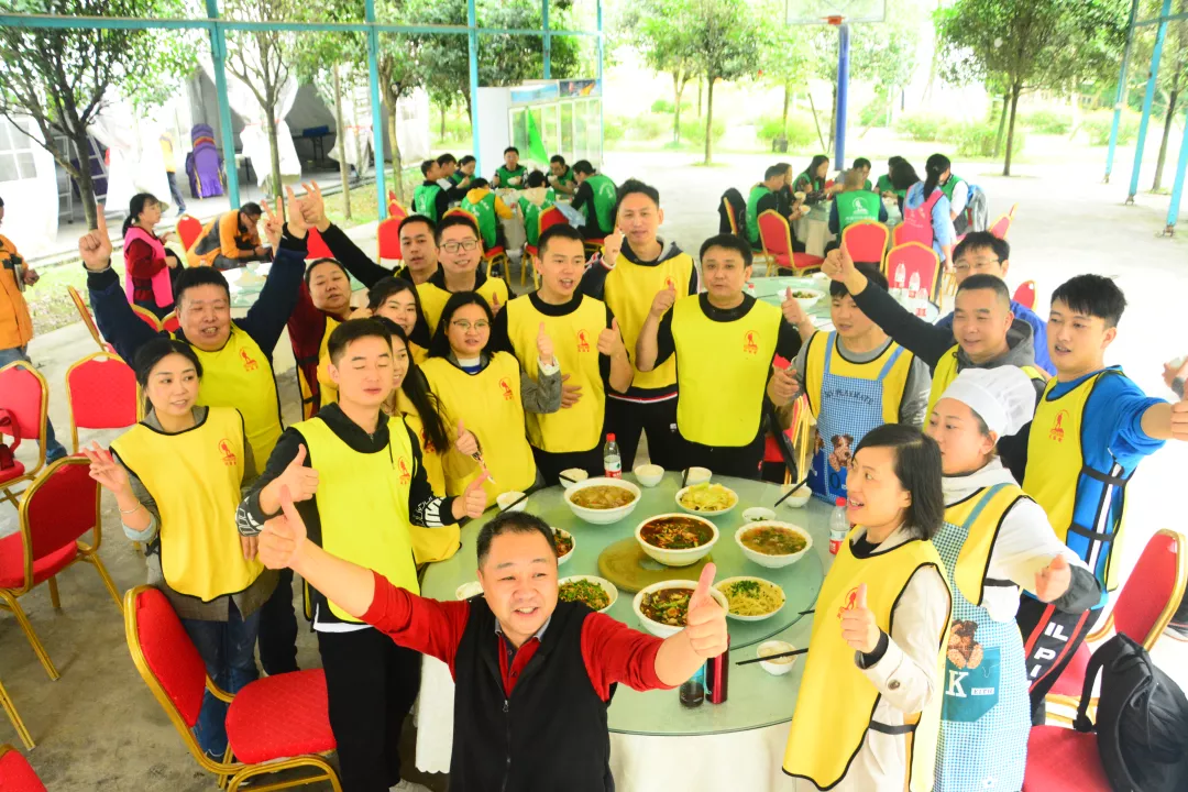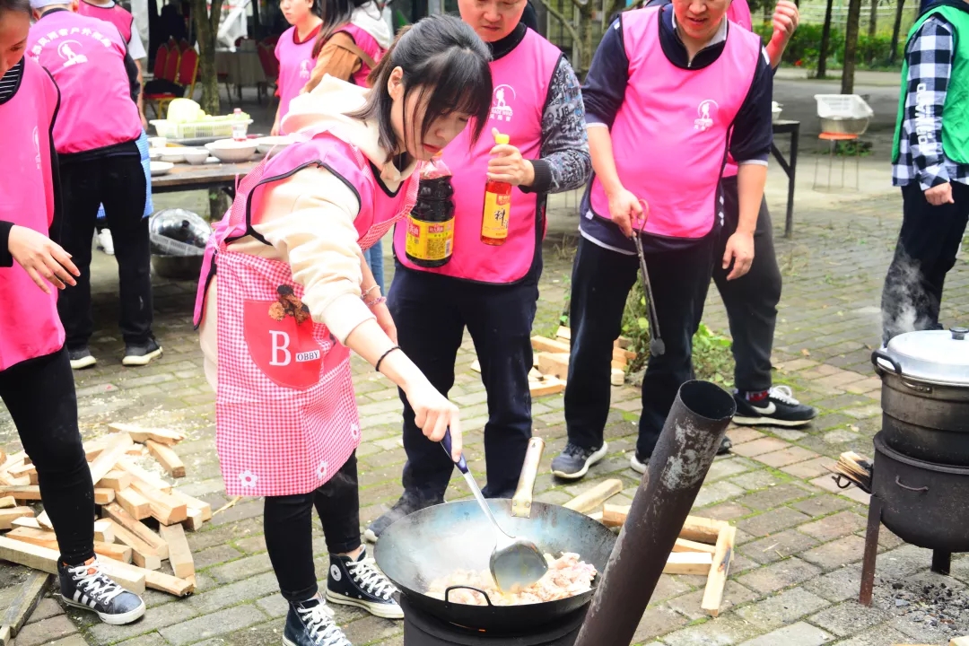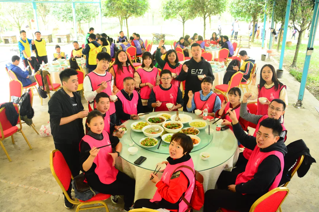 大约一个半小时,各队争霸的四道菜终于亮相:“蛋炒饭”队的福利鸭(福利大),“周心吃”队的红烧肉(红红火火),“食神”队的跳水兔(前程似景),“大当家”队的年年有余(年年有鱼),色香味俱全,各具特色。比拼不是目的,而是让在办公室忙于工作的员工们享受户外活动的快乐,在制作和享用美食中放松心情,增进协作能力,感受美好生活。