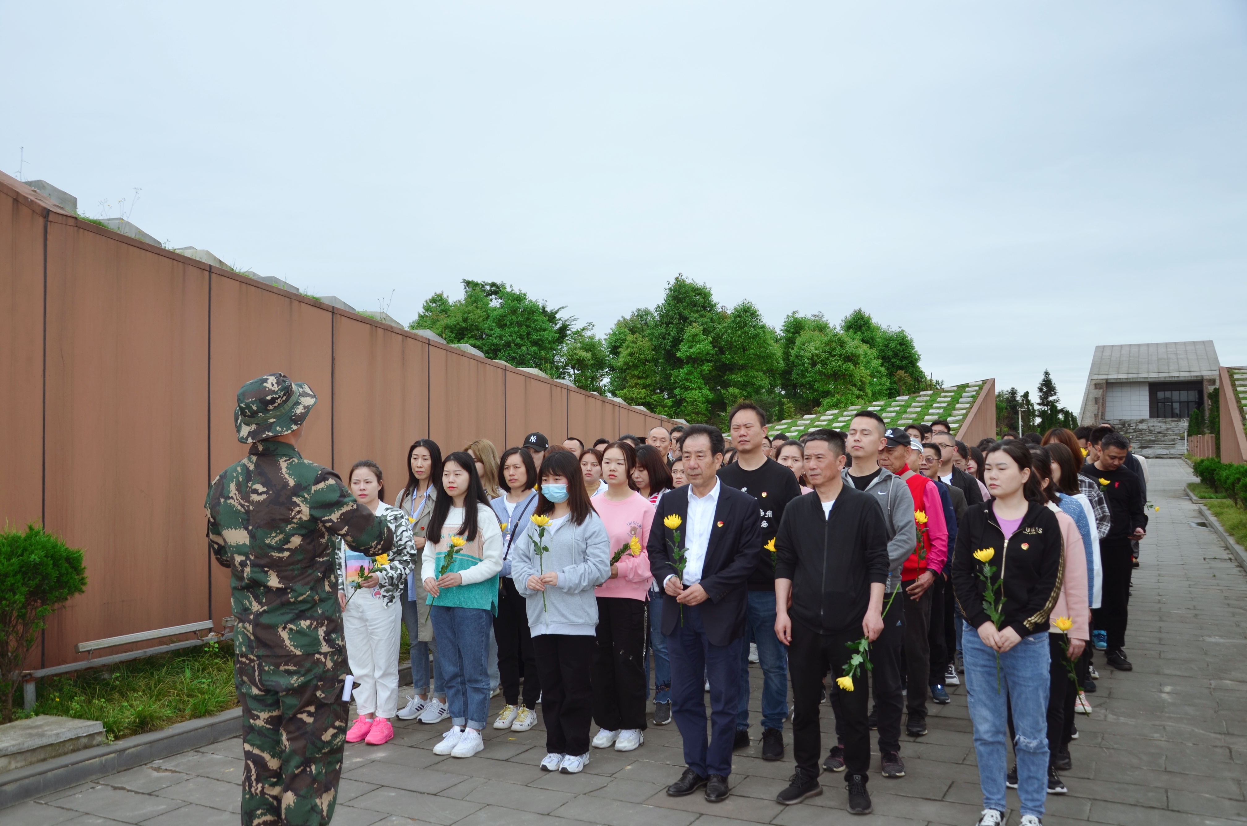 铭记革命历史,传承先辈精神。在教官的带领下,我们来到了红军百丈战役烈士纪念碑前,全体人员神情肃穆,敬献花篮、鞠躬默哀、重温入党誓词、参观红军碑林、瞻仰万名红军烈士陵园并献上了一朵朵黄菊以表哀思。随后,大家认真听取了前百丈镇中心校党支部书记聂金福老人为我们讲述关于百丈关战役的始末及历史性意义。