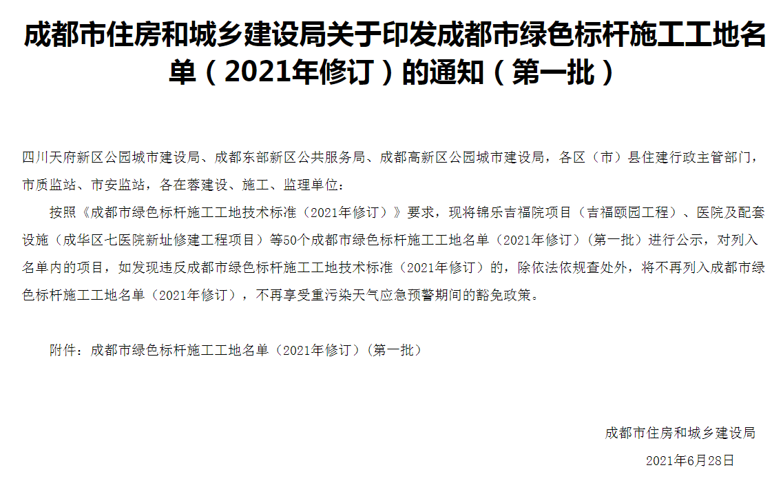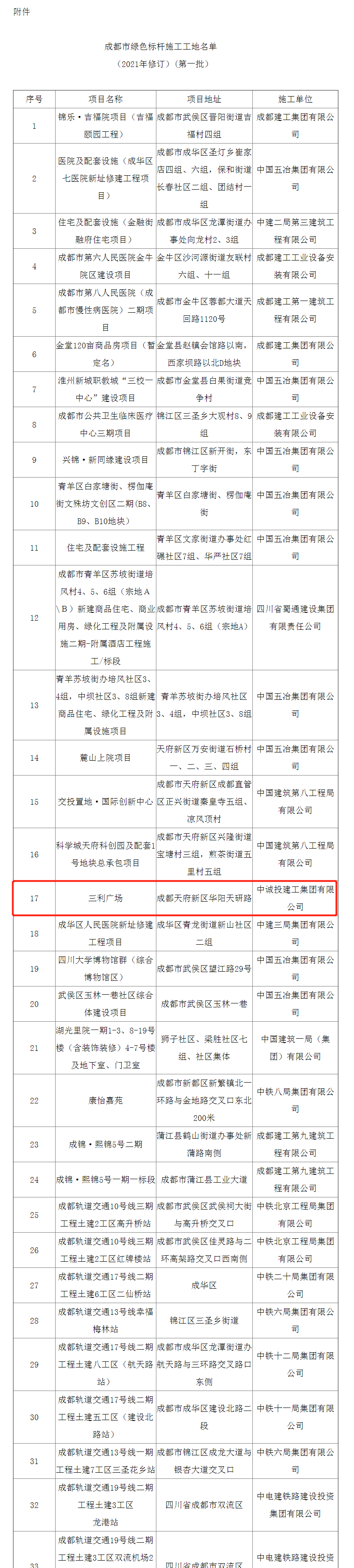 日前,成都市住房和城乡建设局公布了成都市绿色标杆施工工地名单,由集团公司承建的三利广场项目荣获“绿色标杆施工工地”称号。