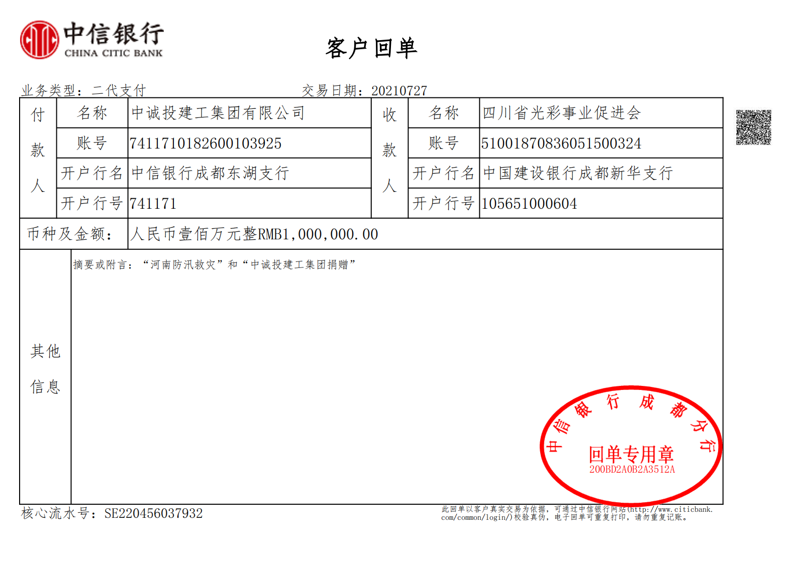 中诚投建工集团向河南灾区捐款捐物500万元