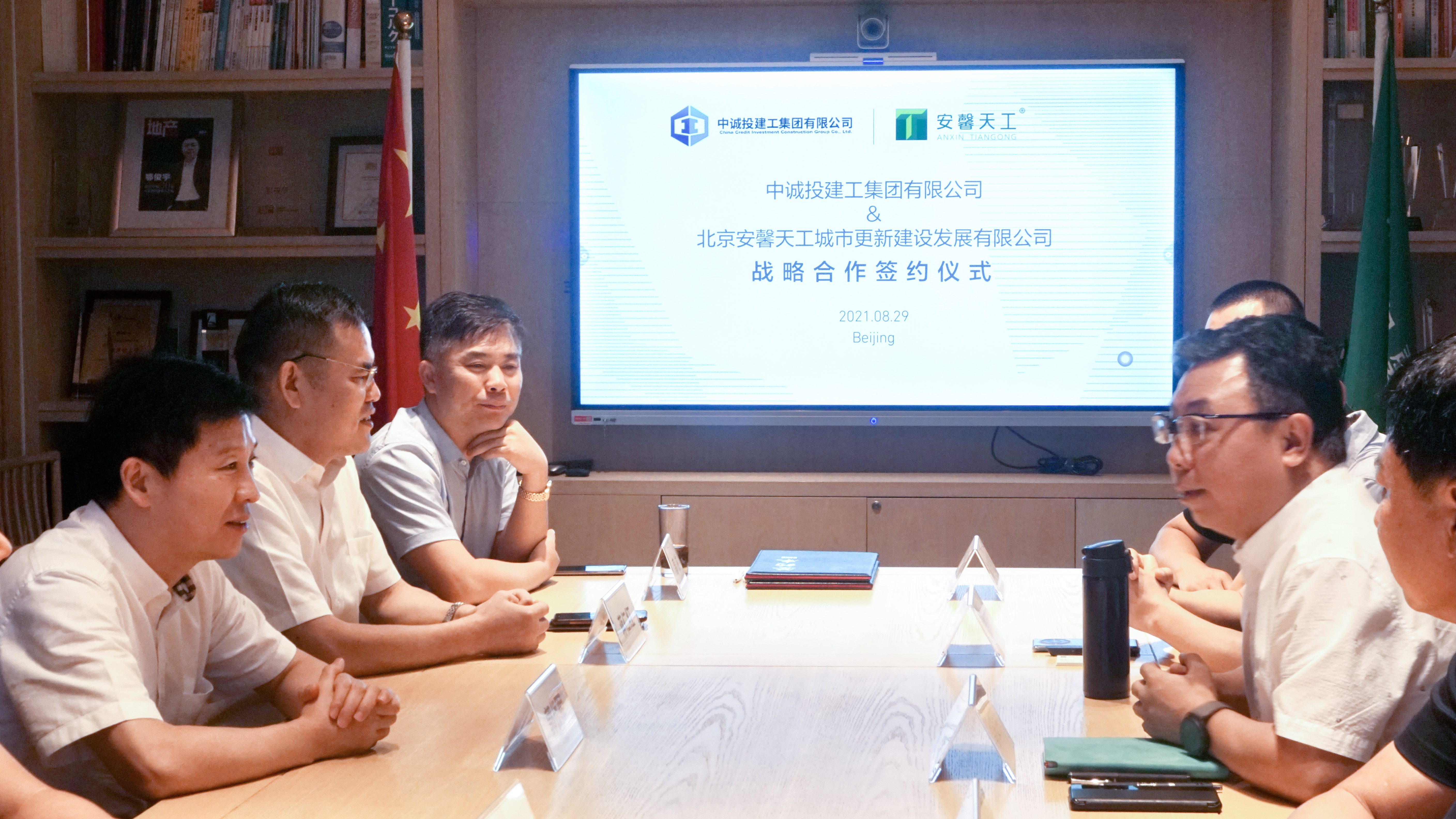 签约仪式前,中诚投与安馨天工举行工作会谈。双方就城市更新、适老化改造、老旧小区改造与社区运营等合作领域进行了深入交流,进一步明确了合作宗旨及合作方式。双方表示,将秉承“优势互补、诚实信用、合作共赢”的原则,建立长期友好的战略合作关系;不断提高资源共享水平和战略合作关系的互信度,形成更大的合作优势,实现共享共创共赢的合作目标。