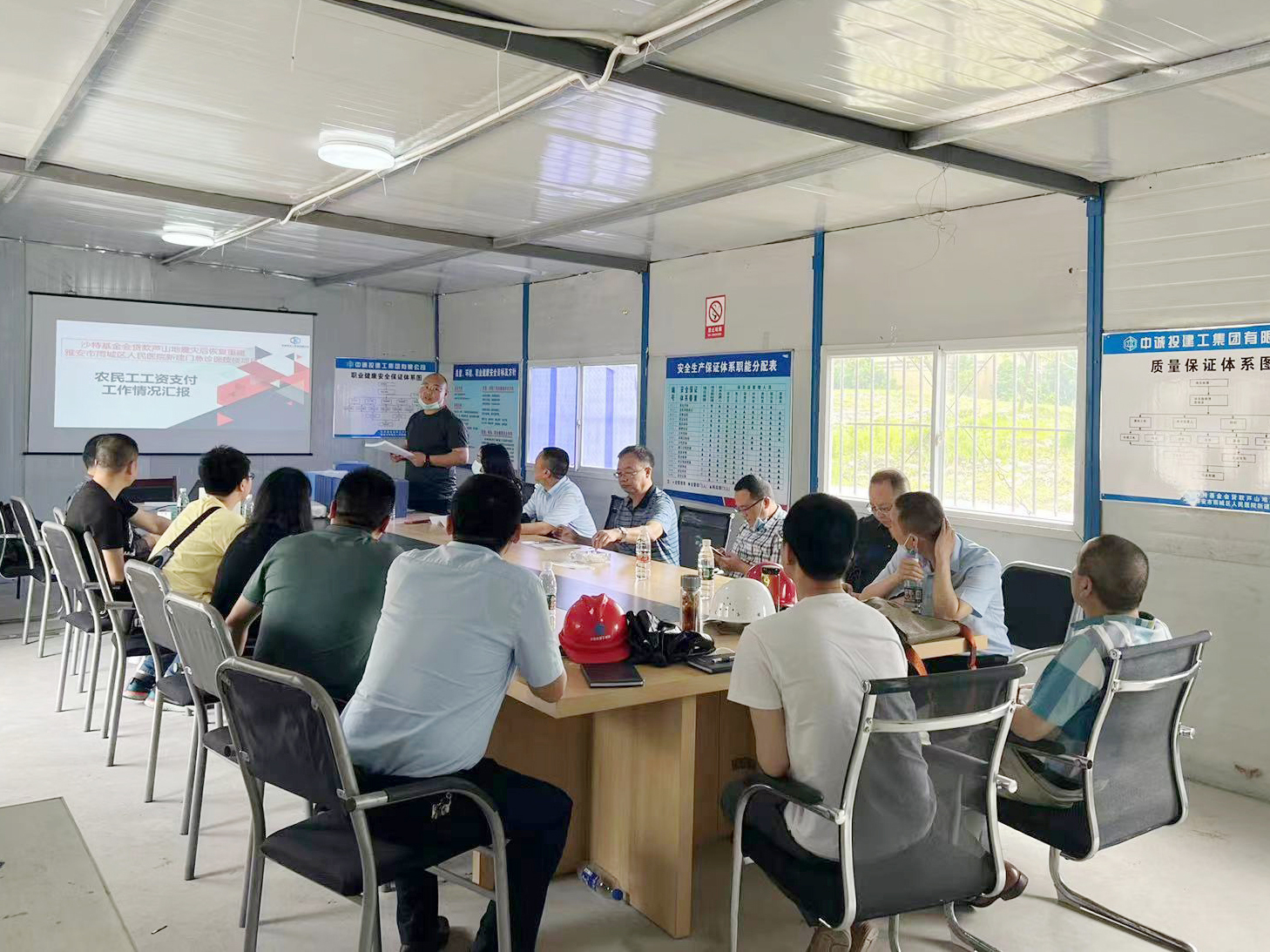 考察交流会上,项目部负责人向领导小组介绍了雨城区人民医院门急诊医技楼项目的基本情况,并围绕《保障农民工工资支付条例》八项制度相关要求,从项目工资保证金、工资分账管理、劳务实名制建设、过程资料管理、农民工工资支付管控、宣传教育、亮点做法等方面,与参会人员进行了详细讲解和深入交流。领导小组充分肯定了该项目保障农民工工资支付工作取得的实效,并纷纷表示当地各在建项目要向该项目学习,把农民工工资支付工作落到实处,切实维护好农民工的合法权益。