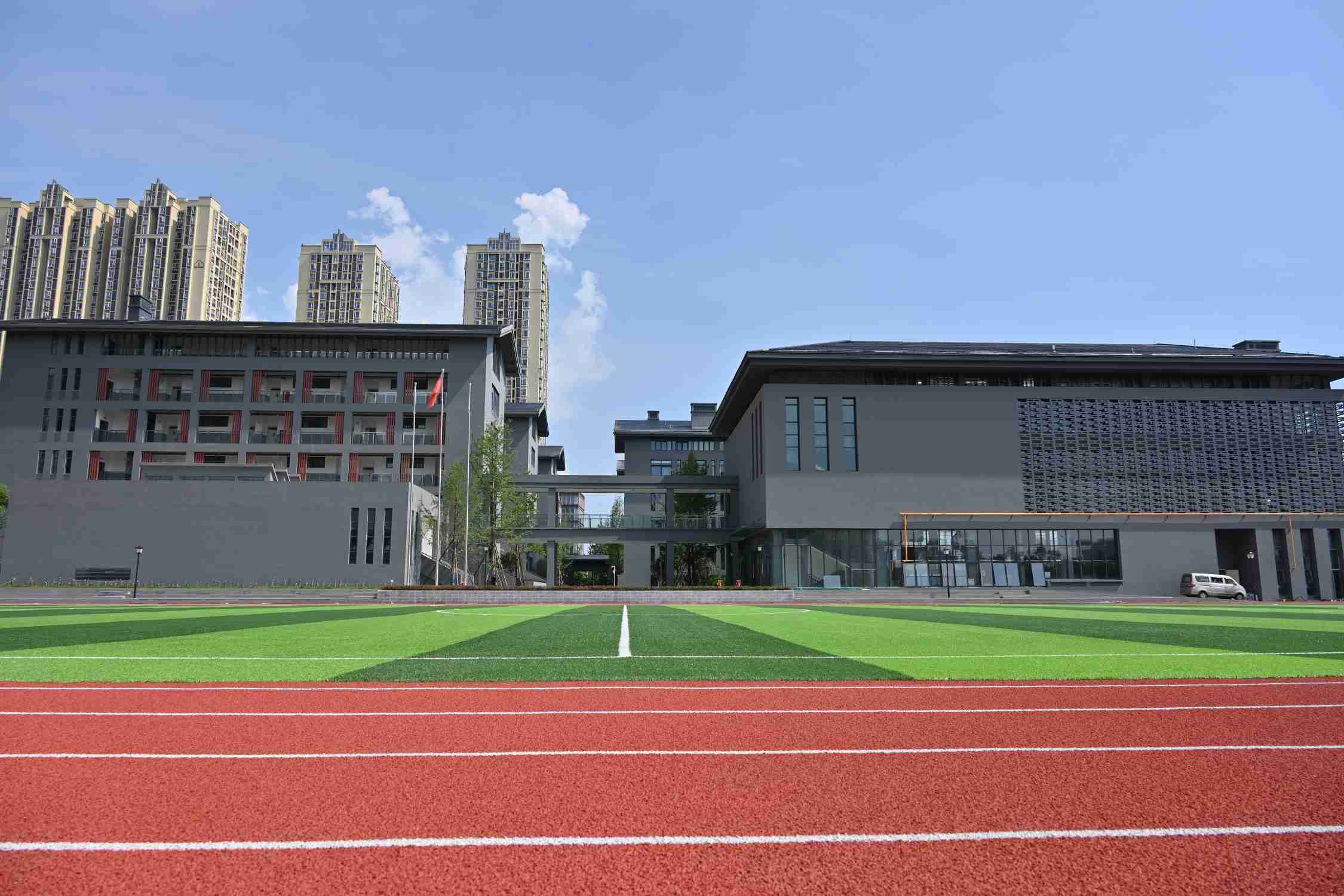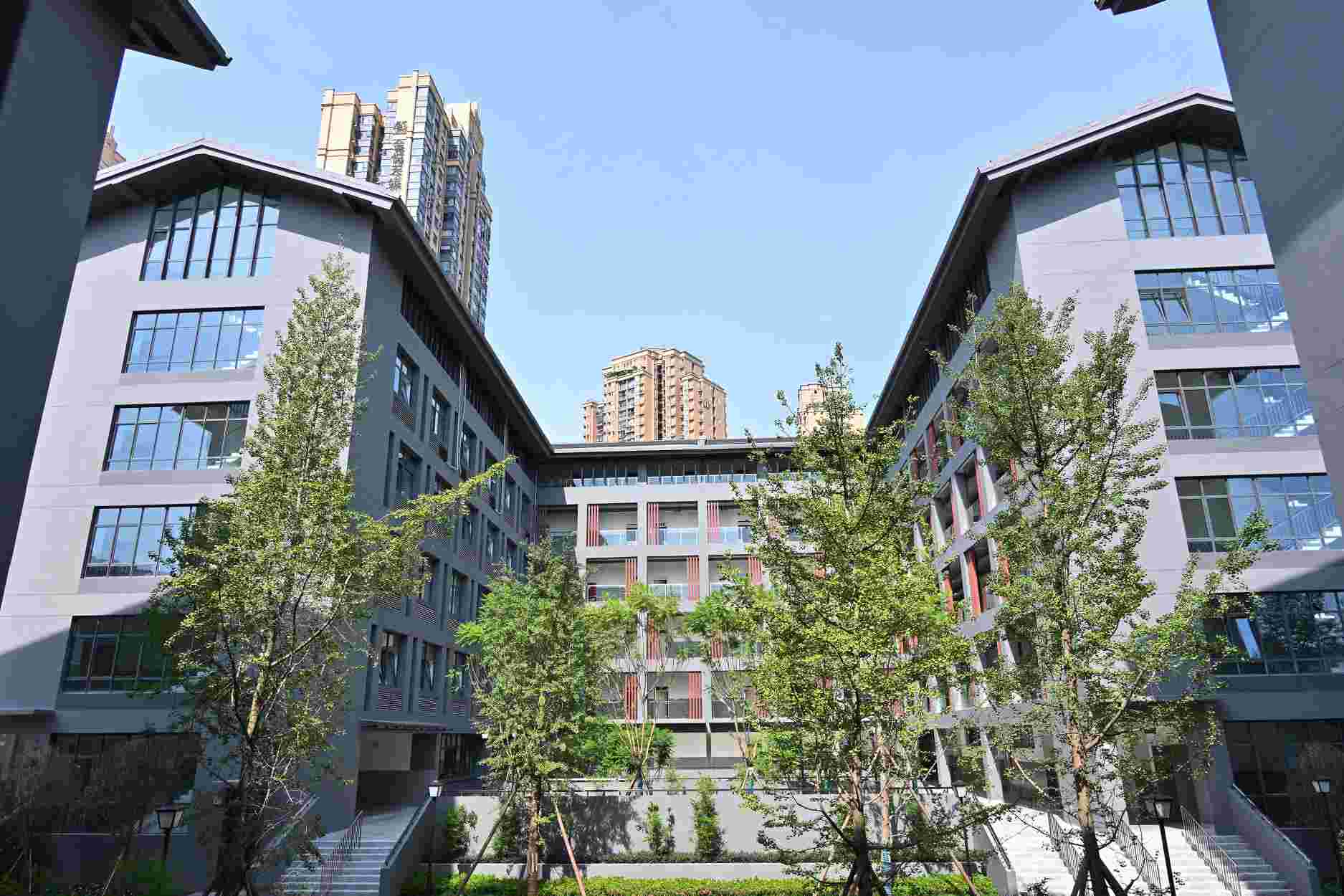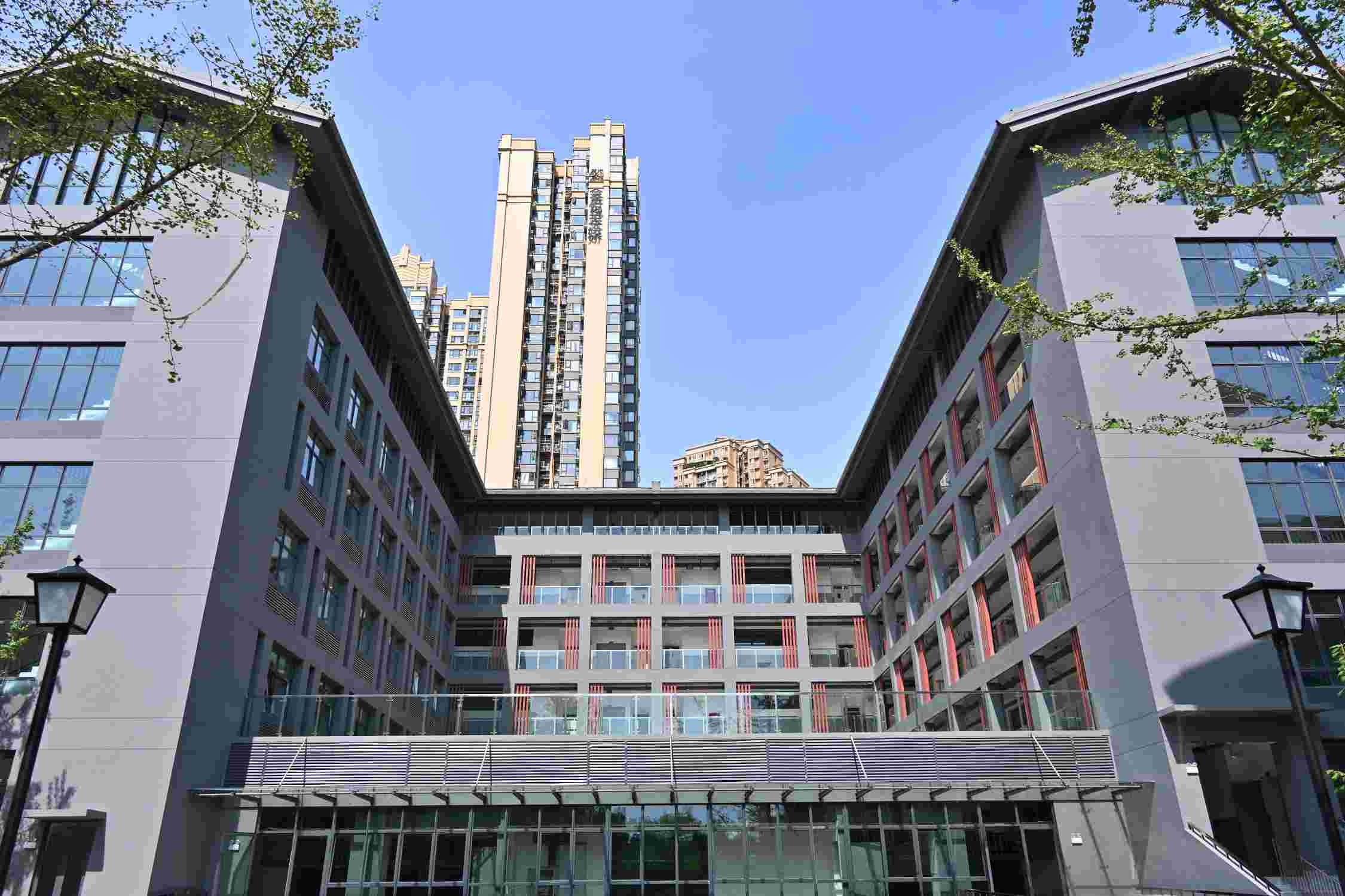 从外望去,学校整体呈汉式园林风格,厚重大气,绿树成荫,与周边环境和谐共生,形成了一幅美丽的新时代学校画卷。