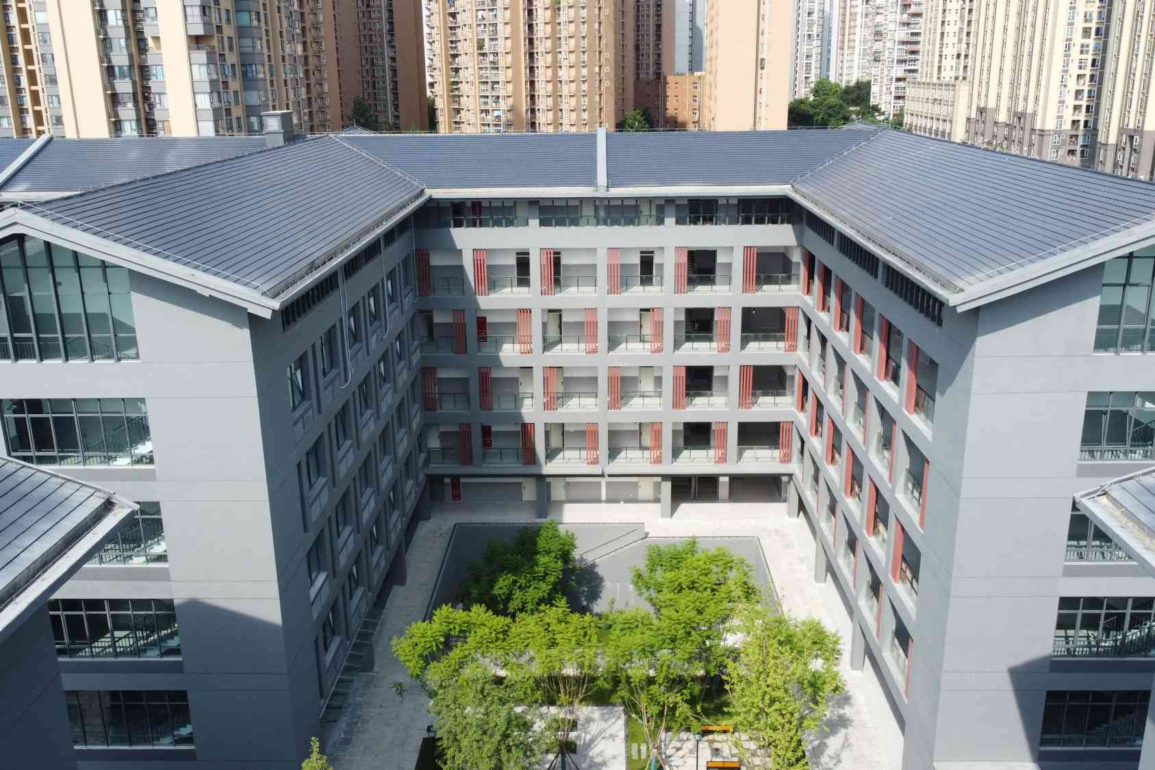学校位于锦江区金像寺路,占地面积24126平方米,建筑面积为32641.15㎡,建筑层数为教学综合楼(装配式)6层、教学综合楼(非装配式)6层、风雨操场及食堂3层、门房1层。