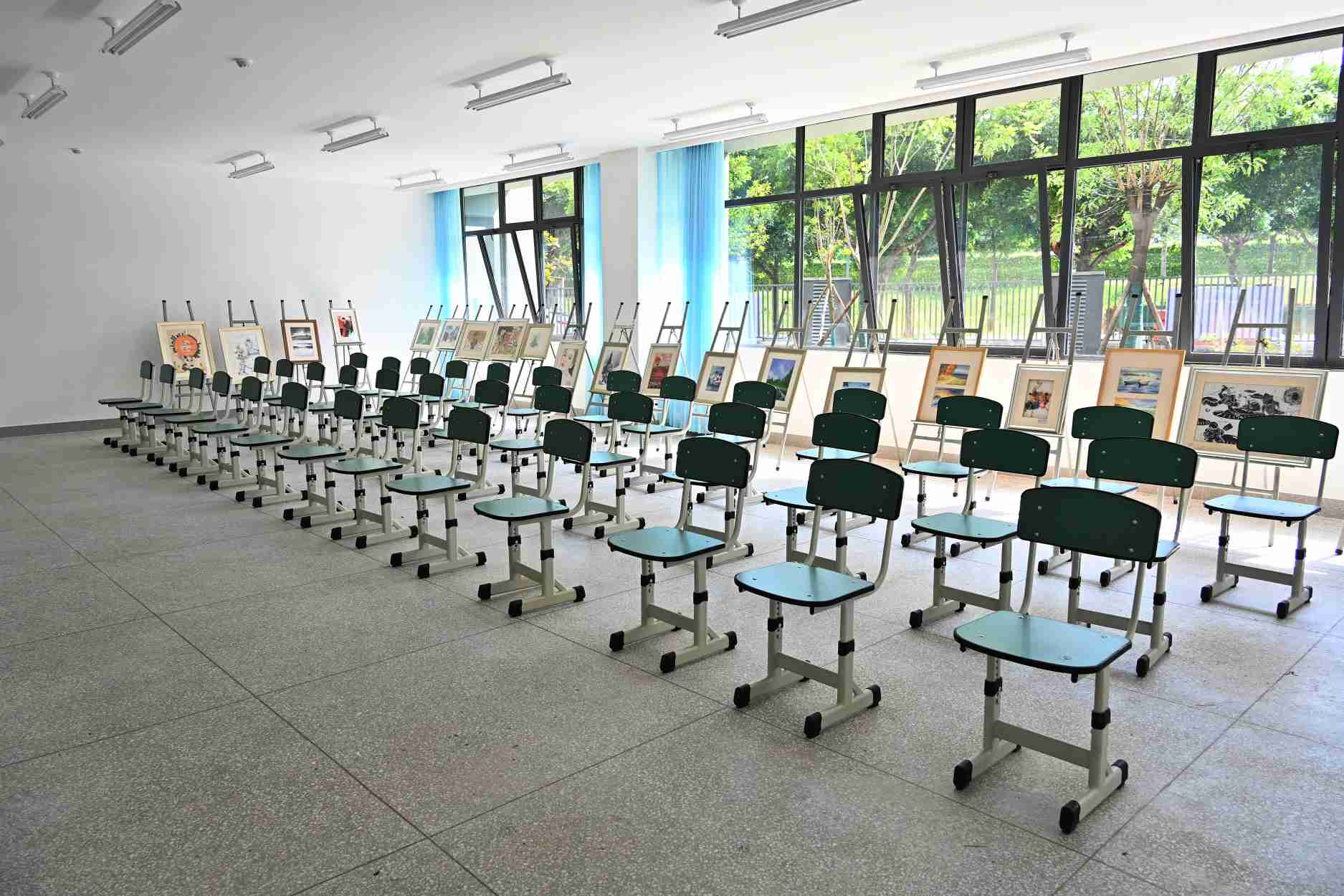 校内设置普通教室48间,功能教室18间,实验室13间,图书室1间,学术报告厅1间,多功能教室1间,地下室车位84个,预计招生2700人。