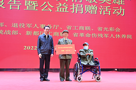 在“永远跟党走·真情敬英雄”活动中,大家现场聆听涂伯毅、周全弟等抗美援朝老战士感人事迹,唐强代表省光彩会向省革命伤残军人休养院进行公益捐赠,周全弟、省光彩会代表倪庆从现场创作书法作品并进行互赠。