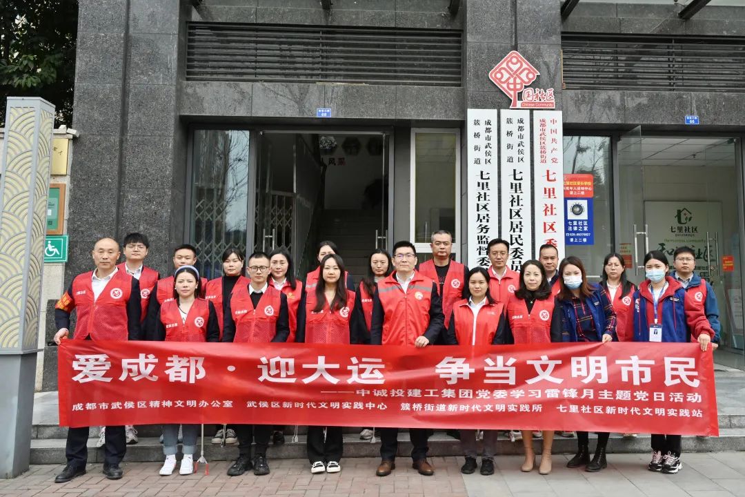 为大力弘扬“奉献、友爱、互助、进步”的志愿者精神,助力成都市创建全国文明城市。3月15日,中诚投建工集团党委赴武侯七里社区,开展“爱成都·迎大运,争当文明市民”主题党日活动,以实际行动践行文明,弘扬雷锋精神。