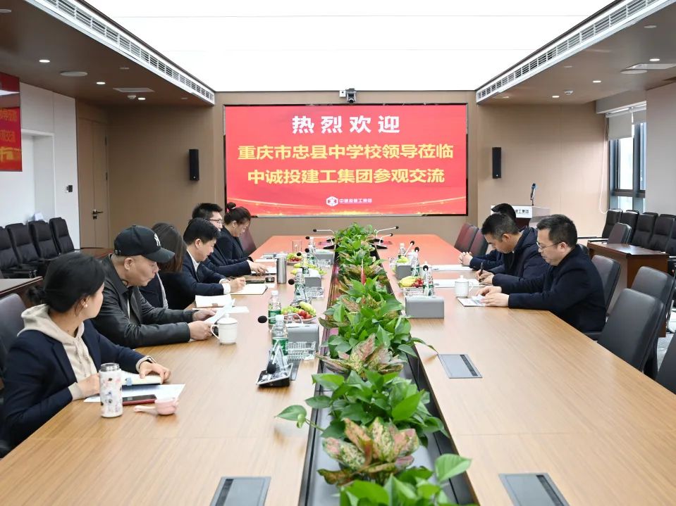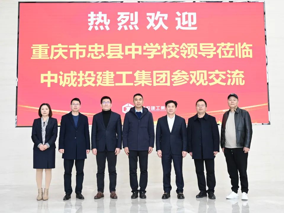 3月27日,重庆市忠县中学党委书记徐亚强,党委副书记、校长冉孟明,党委委员、副校长张言一行莅临中诚投建工集团参观交流。集团公司董事长郭代军,常务副总经理张阜文,副总经理何春仙,重庆分公司总经理刘自力,董事长助理丁小英等领导热情接待。