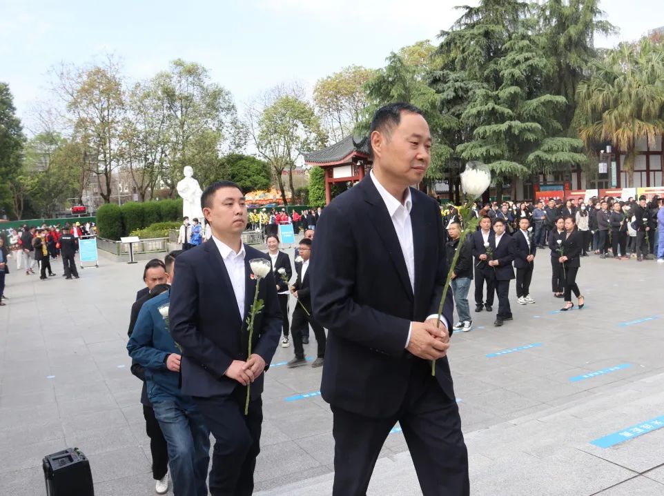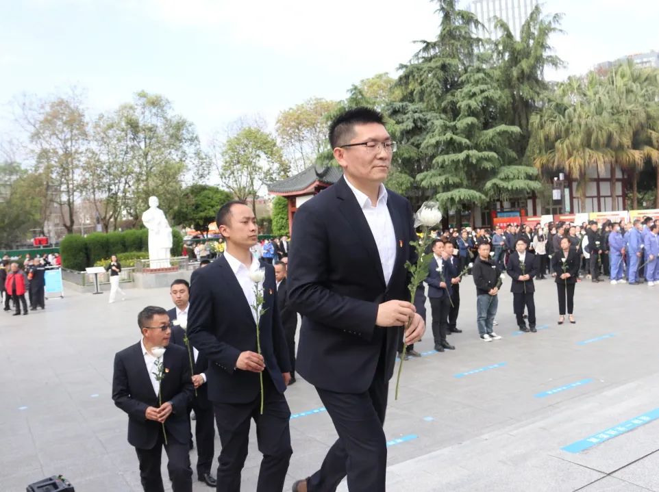 上午9时30分,在烈士墓前,全体党员及入党积极分子手捧鲜花、整齐列队、肃穆默哀。伴随着庄严的《献花曲》,2名入党积极分子向烈士墓敬献花篮,全体人员依次缓步上前,向36座烈士墓献上寄托深深哀思的朵朵白菊,表达对先烈的深切悼念和无限敬仰。集团公司党委书记张阜文带领全体党员面向鲜红的党旗和庄严的烈士墓,高举右手,一起重温铮铮誓言,激励自己不忘入党初心,牢记使命,进一步坚定赓续红色血脉,弘扬烈士精神,立足岗位奋进实干的决心。