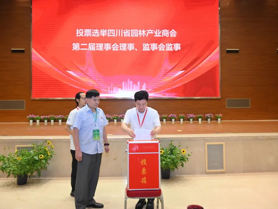 大会审议通过了《四川省园林产业商会第二届第一次会员代表大会选举办法(草案)》和总监票人、监票人、计票人名单,并选举产生新一届理事会成员。郭代军当选为会长,白德辉、罗元锋、熊燕当选为副会长,关建平当选为监事长,江卫当选为秘书长,陈奉保、习金美当选为联席会长,江克华当选为执行会长。