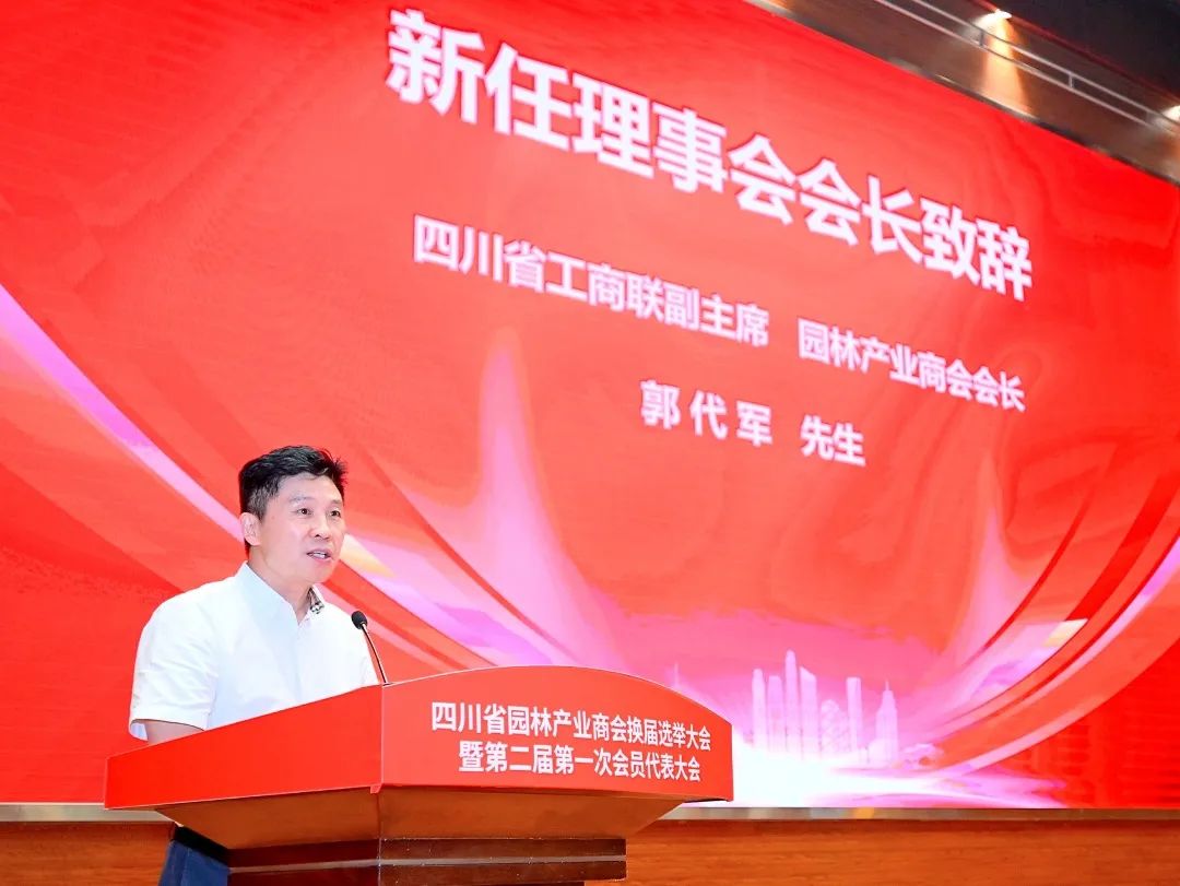 郭代军表示,担任新一届四川省园林产业商会会长,深感使命光荣,责任重大。今后将带领四川省园林产业商会继续紧跟党和国家的政策导向,积极贯彻党的二十大精神,充分发挥商会和会员企业之间的桥梁纽带作用,进一步凝聚和团结川内园林产业企业力量,持续搭好平台、做好服务、整合资源、促进合作,用坚定的信心和务实的干劲,助力会员企业和商会平台更好地迈向高质量发展之路,努力为四川经济的发展做出更多更大的贡献。