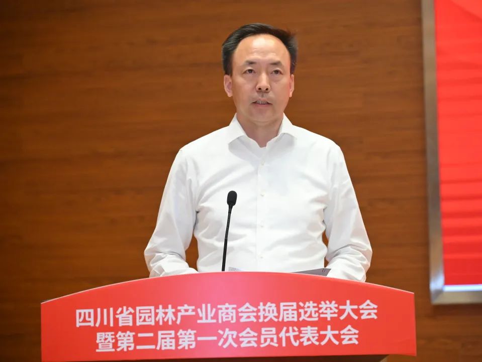 四川省工商联党组成员、副主席郑宗强作指导讲话。他代表四川省工商联、四川省商会向园林产业商会离任的第一届领导班子为商会建设和园林产业发展作出的卓越贡献表示感谢,向新当选的理事会、监事会和领导班子成员表示热烈的祝贺。