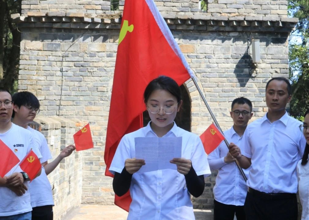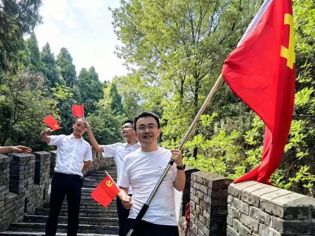 登顶后,党委举行了齐唱党歌、重温入党誓词系列活动。在党委书记张阜文的带领下,全体同志庄严肃立面向党旗,高举右手重温入党誓词,重忆作为一名共产党员的革命初心,在一声声的庄严誓言中更加坚定自己的理想信念,深切领悟党员的历史使命。