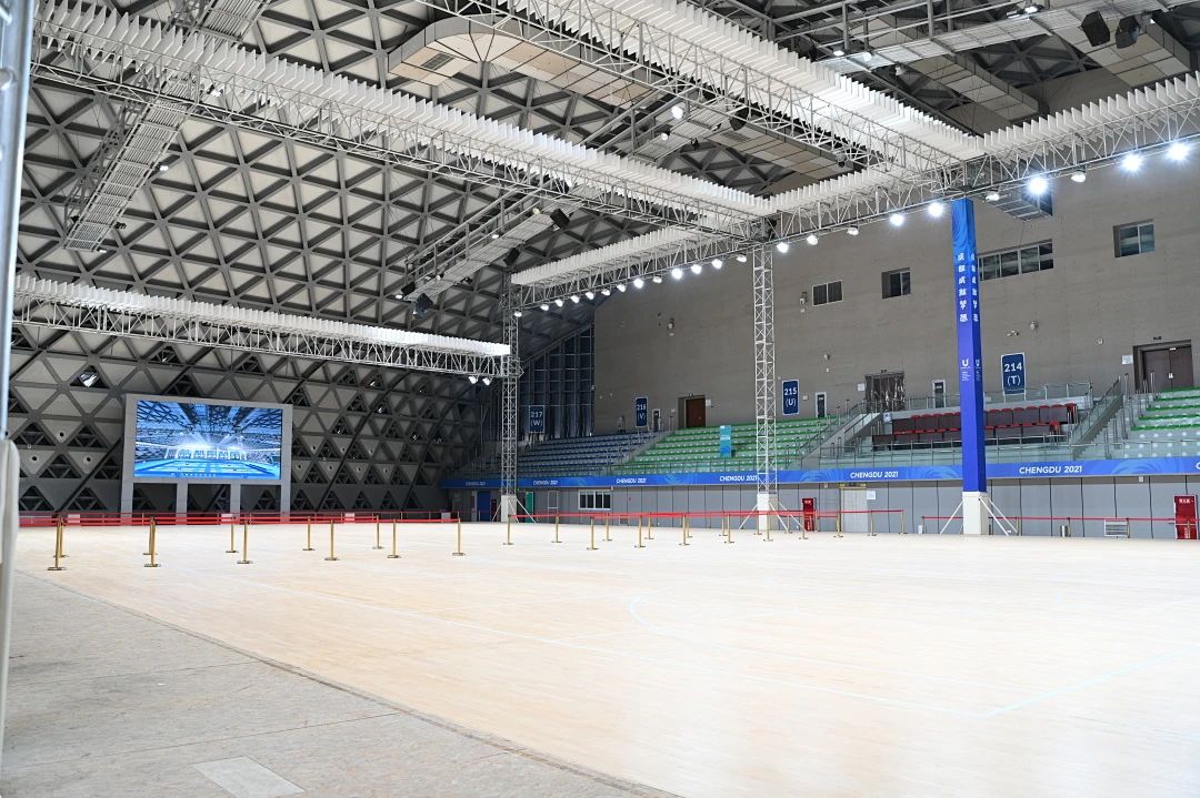 郭代军表示:郫都击剑场馆是由原有的体育场馆改建而成,它的改造工程造价相对较低,符合“节俭办大运”的时代理念。我们在施工中,特别注重对既有设施的保护,最大限度使用原有的设施设备和功能用房,确保大运会后能将场馆快速恢复至原貌。