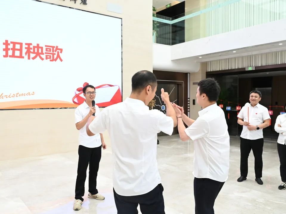 趣味游戏在欢乐的音乐中拉开帷幕,在主持人的指引下,大家迅速组成了“红旗”“国庆”“中秋”“月饼”4支队伍。一场体力与脑力的“萝卜蹲”趣味暖场游戏,让大家立即投入到欢乐的活动中,现场氛围迅速升温,欢笑声、掌声此起彼伏,拉近了彼此的距离。