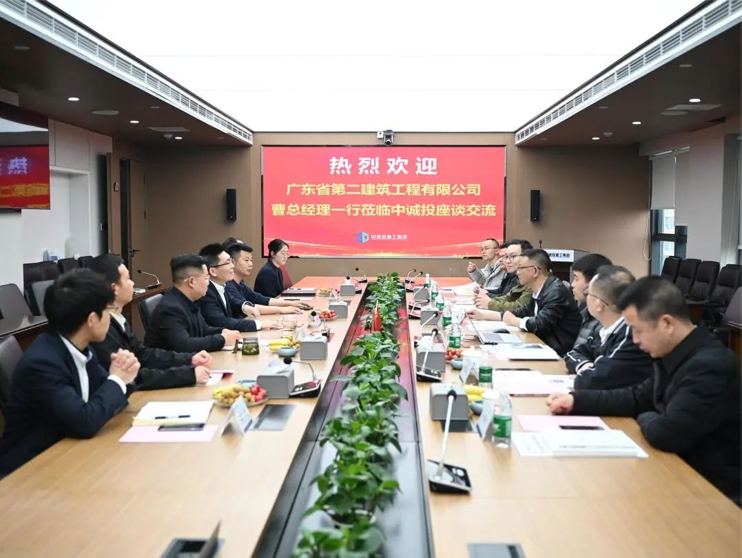 曹岸斌对中诚投建工集团的热情接待表示感谢,并介绍了广东省第二建筑工程有限公司发展历程以及近年来改革发展情况。希望双方充分利用各自领域优势,在项目投资、建设、运营等领域深化务实合作,共同获取、开发市场资源,实现优势互补、互利共赢。