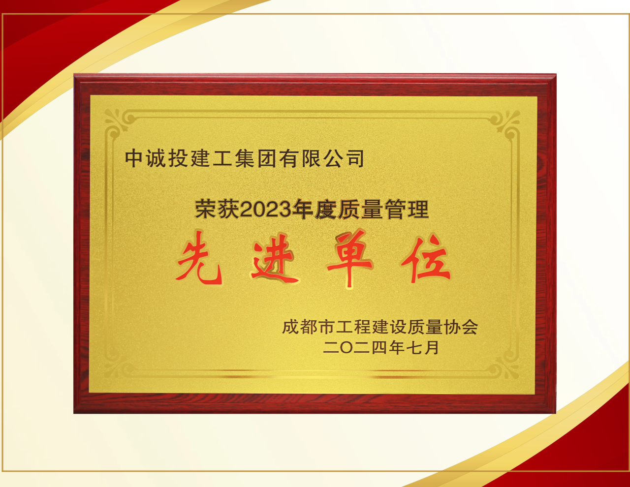 近日,成都市工程建设质量协会正式发布2023年度“质量管理先进单位”名单,中诚投建工集团名列其中,被授予“质量管理先进单位”称号。