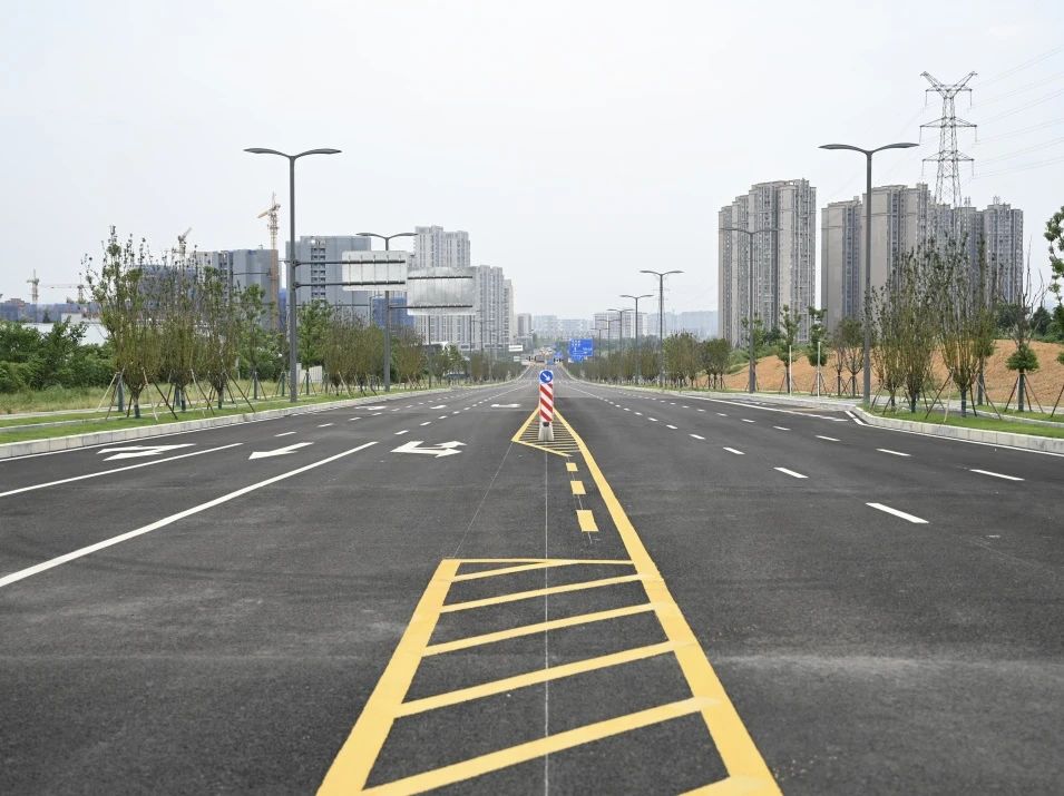 平整的人行步道、整齐的树池框、清晰的地面标识以及宽敞的机动车道等一一映入眼帘,整条道路焕然一新。协和大道北延线南起于和顺路,北止于警校路,道路全长约2025.224m,规划红线宽度40m,西侧规划绿化宽度20—21m,东侧规划绿带宽度55—82m,沿线设置桥梁一座。该项目涵盖道路、排水、桥梁、给水、电力通道、景观、智慧综合杆与交通等多项工程施工内容,充分体现了项目的综合性与复杂性。协和大道北延线规划为“三纵三横”骨干路网,通车后将有效地连接双流区华府板块至怡心板块,极大地便利周边居民出行。